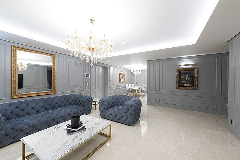 집주인의 유쾌한 성향과 욜로(YOLO)족의 화려한 라이프 스타일을 담을수 있는 톤앤매너로 마리 앙뜨와네뜨의 파티를 연상시키는 프랑스 베르사이유 별궁 중 하나인 “Petit Trianon”를 차용하였다.